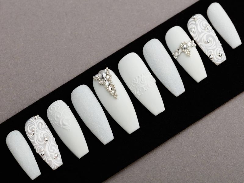 The long and brilliant nails are suitable for special events (year-end parties, opening ceremonies, etc.) Meanwhile, you should use short and simple nails for gatherings or hanging out.